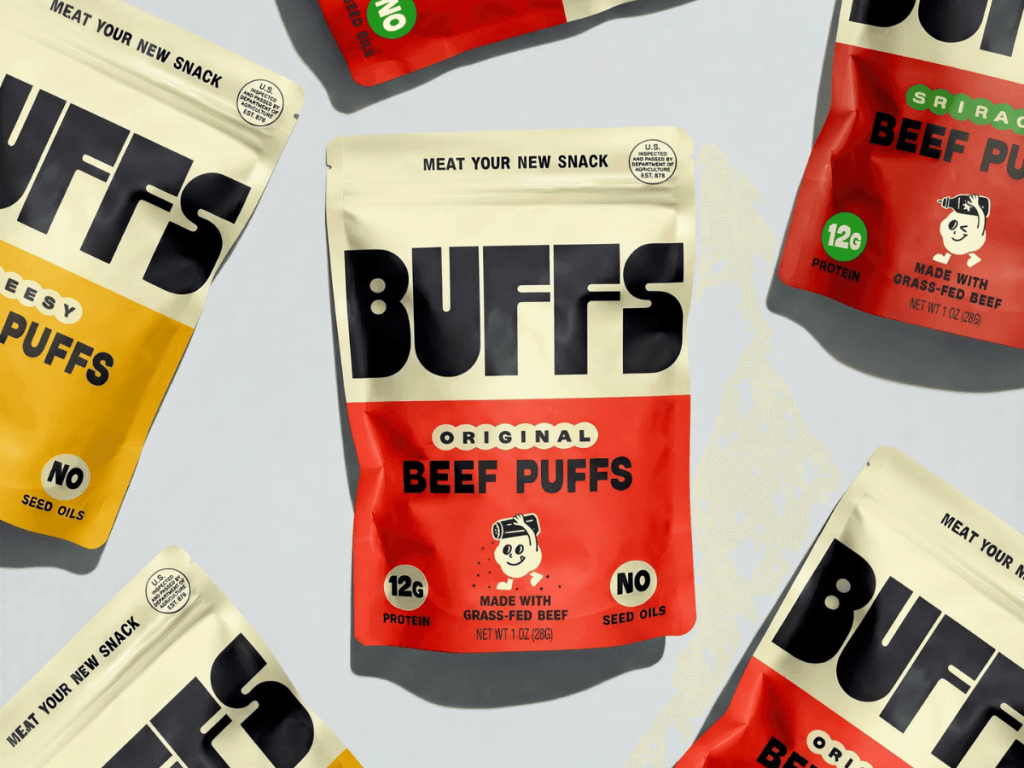 Speaking last year, George explained that BUFFS were born out of a desire to combine natural, high-protein meat products with the “airy, crunchy, addictive snacks that we loved as [kids]: Goldfish, Cheez-Its, [and] pretzels”.