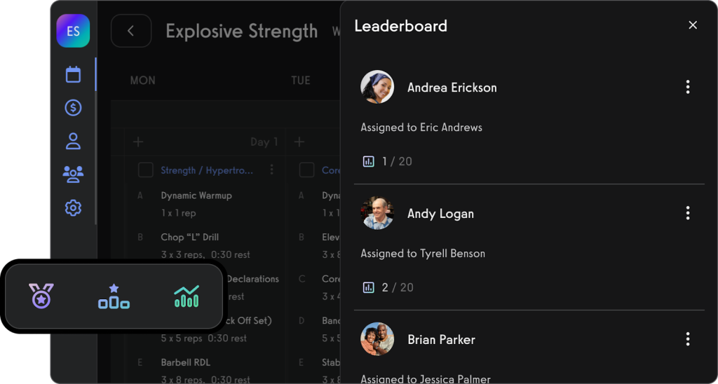 Under the same umbrella, trainers can assign bespoke workouts en masse, members can track progress, compete in leaderboards, communicate with coaches, and attend virtual or in-person classes with ease.