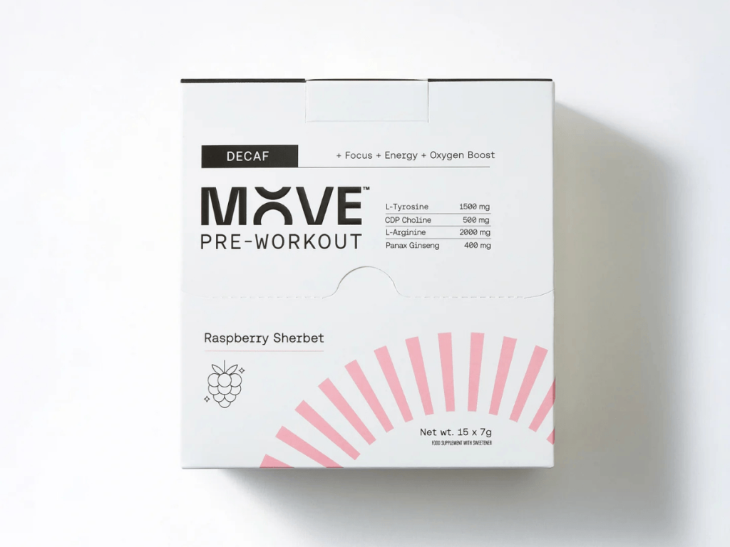 For now, MOVE’s decaf pre-workout is available in boxes of single-serve sachets direct from the brand’s online store.